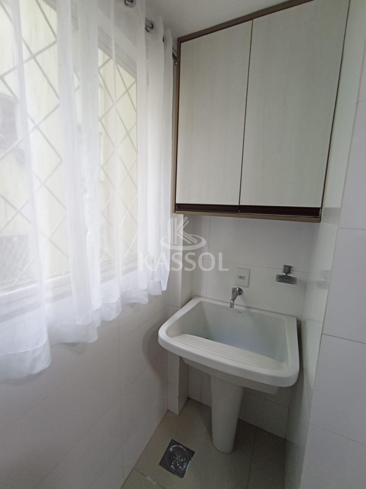 Área de serviço com armário e tanque de louça;