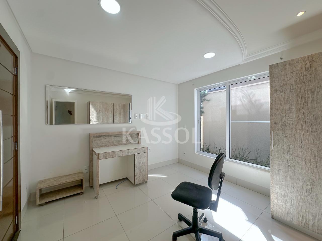 A residência dispõe de duas suítes e uma suíte master, garantindo privacidade e conforto para toda a família. Possui uma elegante sala de estar, cozinha funcional, área gourmet integrada, perfeita para receber amigos e familiares, além de escritório, lavabo, banheiro social e área de serviço.
